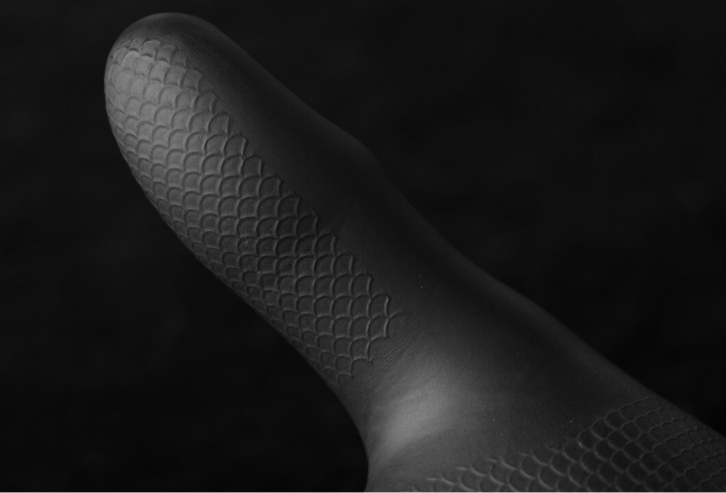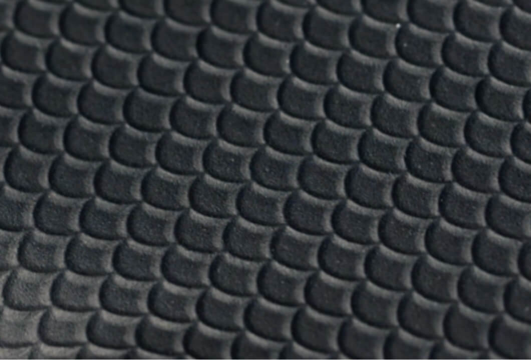 魚のウロコ形状(フィッシュスケール)の凹凸加工で、