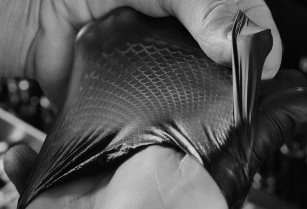 通常のニトリル手袋の1.5倍以上の強度を実現。
