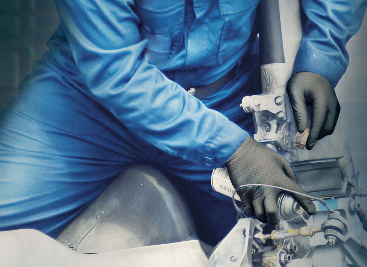 ネジや工具等を掴みやすく、作業の疲労感を軽減するソフトで優れたフィット感。油やケミカルの皮膚への浸透を低減し、手のへの安全性を向上。
